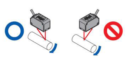 ? 測量時,移動的測量對象物的材質、顏色極端不同的情況下,按照下圖所示方向進行安裝,從而可將測量誤差控制在最小限度。
