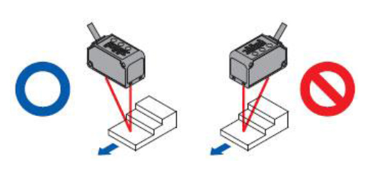 ? 移動的檢測對象物存在段差的情況下,請按照以下方法進行安裝,從而可在測量時抑制段差邊緣所產生的影響。