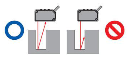 ? 在狹隘場所和孔中進行測量的情況下,安裝時,請注意避免遮擋投光部至受光部的光路。