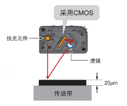 采用位移傳感器所使用的高精度CMOS影像傳感器,以及位移傳感器一直使用的本公司獨特的算法,實現了微型激光傳感器1mm/100mm的高精度