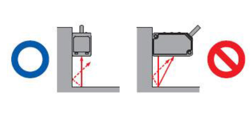 ? 請按照以下方法進行安裝,以免墻面產生的多重反射光入光到受光部分。另外,墻面反射率較高的情況下,如改為無光澤的黑色,則效果更好。