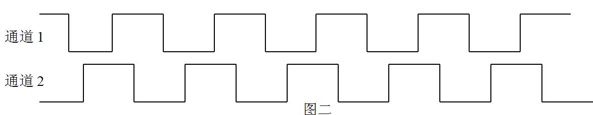 當旋轉(zhuǎn)方向與圖四 所示方向相反時,通道2波形將超前通道1波形90度,波形示意圖如下所示: